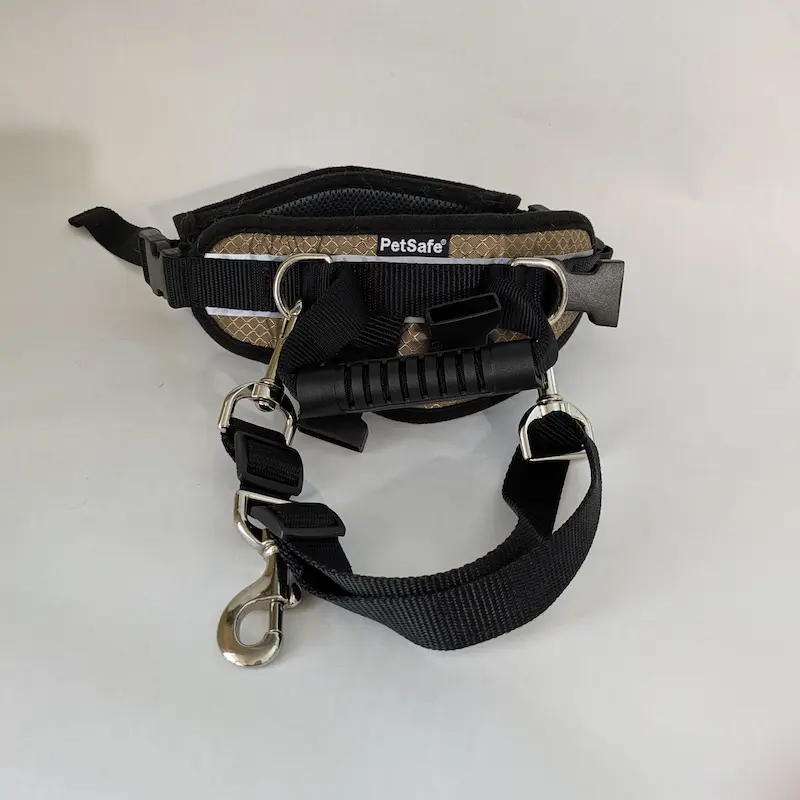 Spring is beautiful, but it has it’s challenges. Between the melting snow where paws sink through and the slippery ice, forest walks were becoming difficult, even without the consideration that Maya’s back leg stability isn’t what it used to be. This harness helps her navigate these changing conditions. By taking a bit of her weight, I give her the stability and endurance she needs to keep exploring and “smelling all the smells” she loves, without her getting overexerted. The harness comes with detachable hip supports that go under each rear leg, but we don’t use these, as they rubbed against her and made her walk awkwardly.
