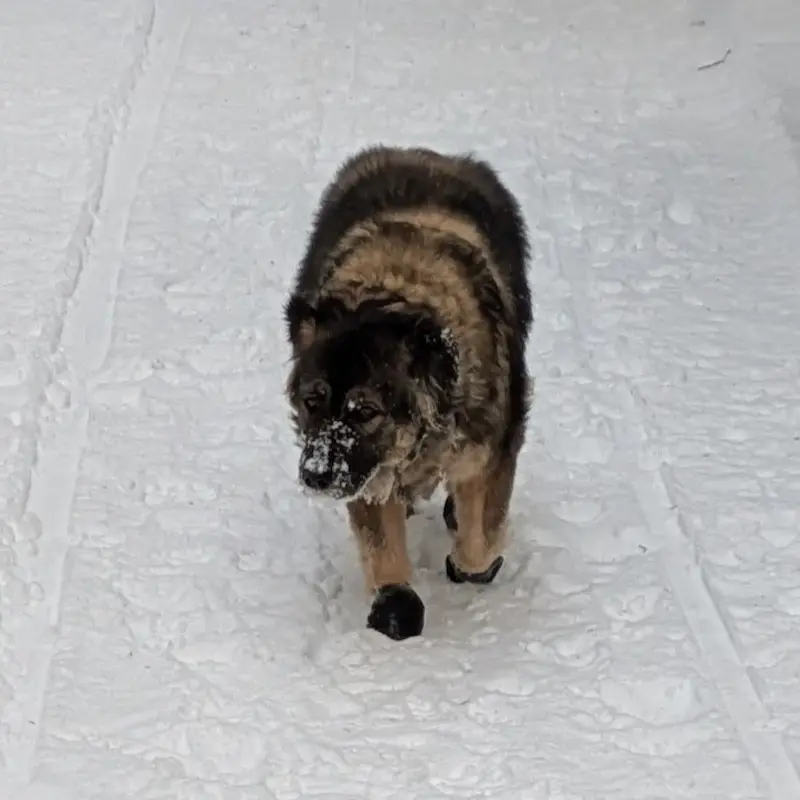 I bought a box of these in the fall of 2025 when Maya was 16 to help keep an infected nailbed clean and dry during our walks. They were the only thing that effectively kept the moisture and dirt out while she was healing. They can be tricky to put on, especially when new, but I discovered a trick: stretch the boot opening over a short cylinder (like a piece of PVC pipe or a ring of duct tape). You then place the paw through the cylinder into the outstretched boot and slide the cylinder off. It makes the process much smoother!